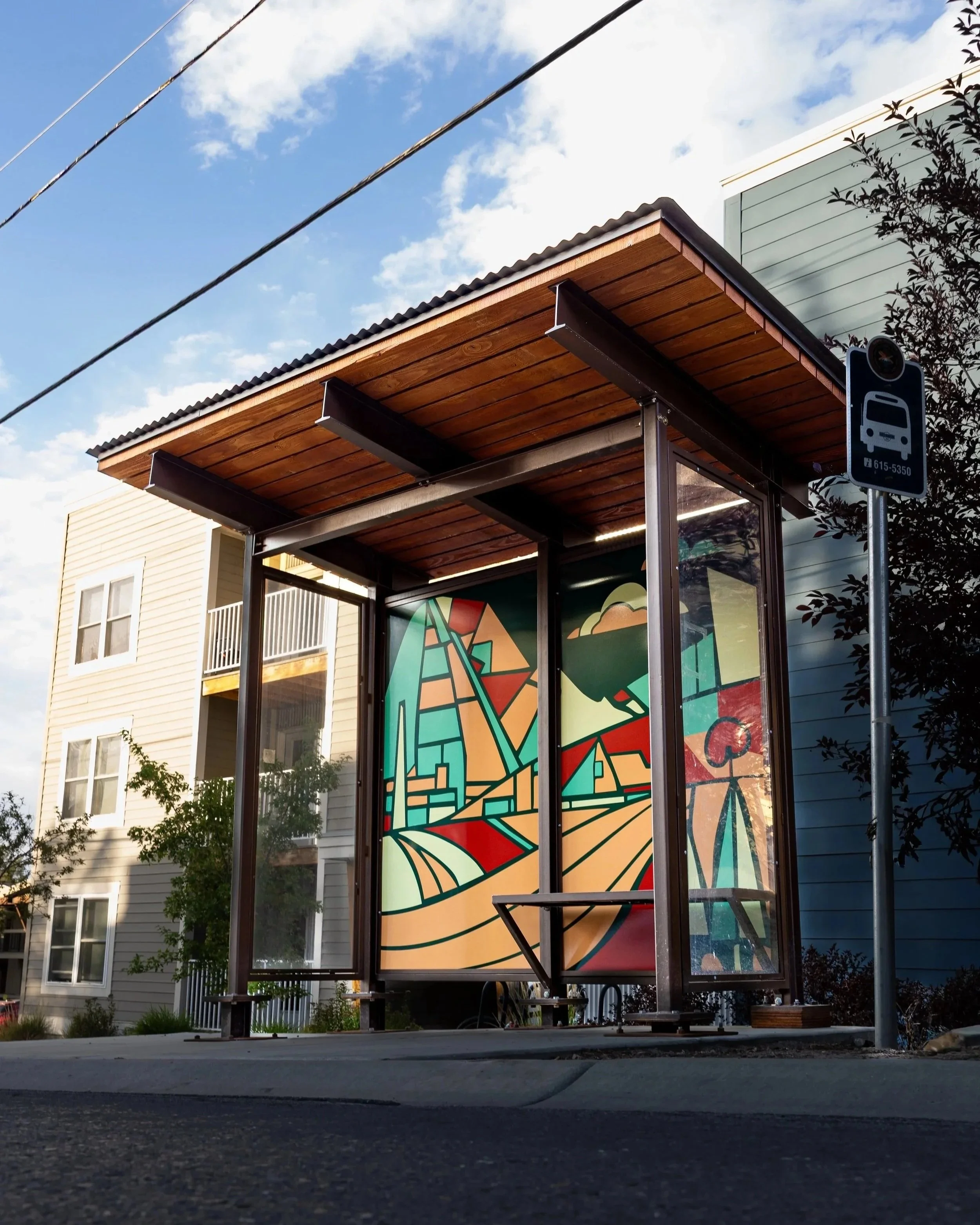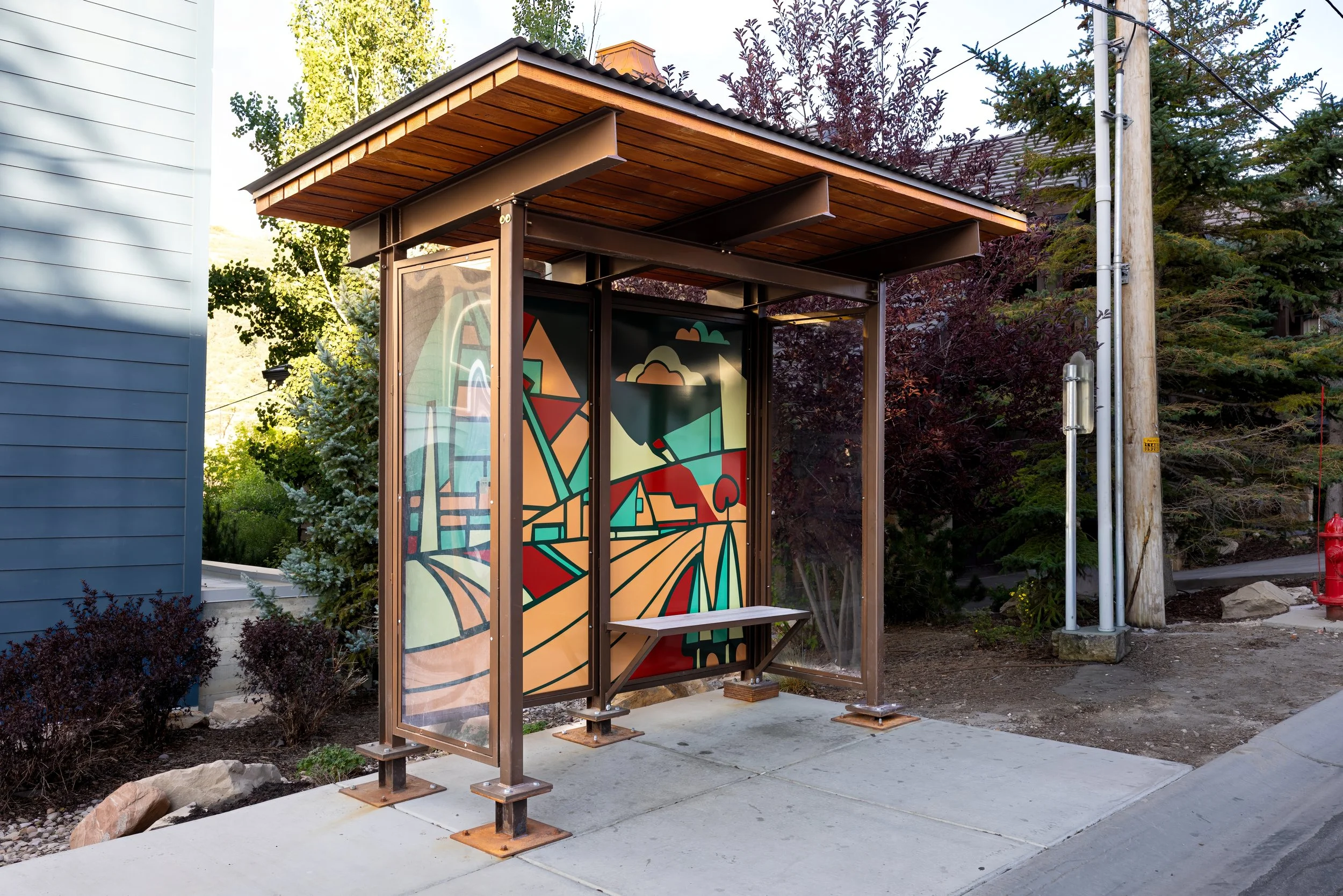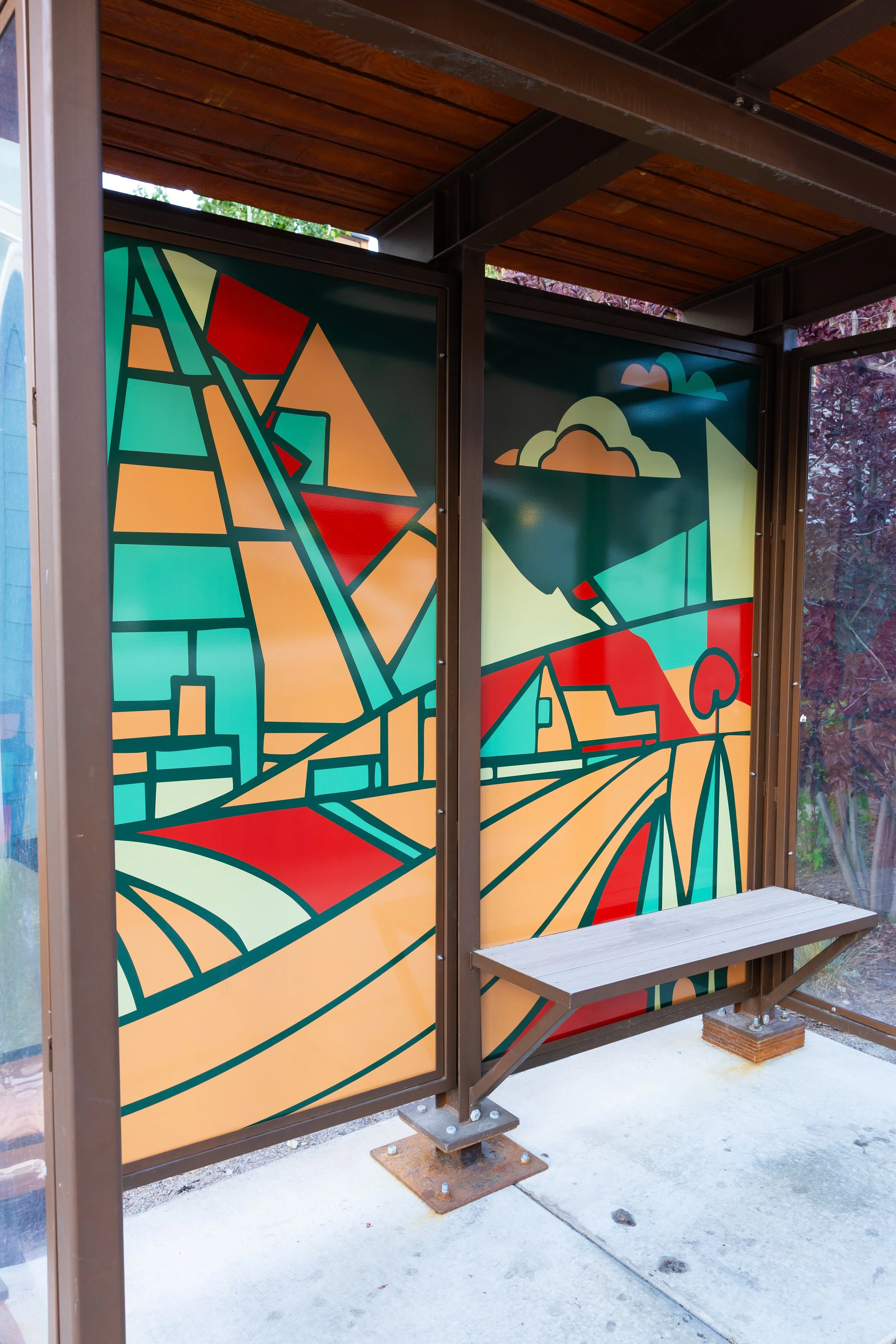 Designed 4’6 x 10’ site-specific public artwork for Park City's “Timeless Connections” bus shelter project, incorporating local cultural themes and a transit-inspired color palette.