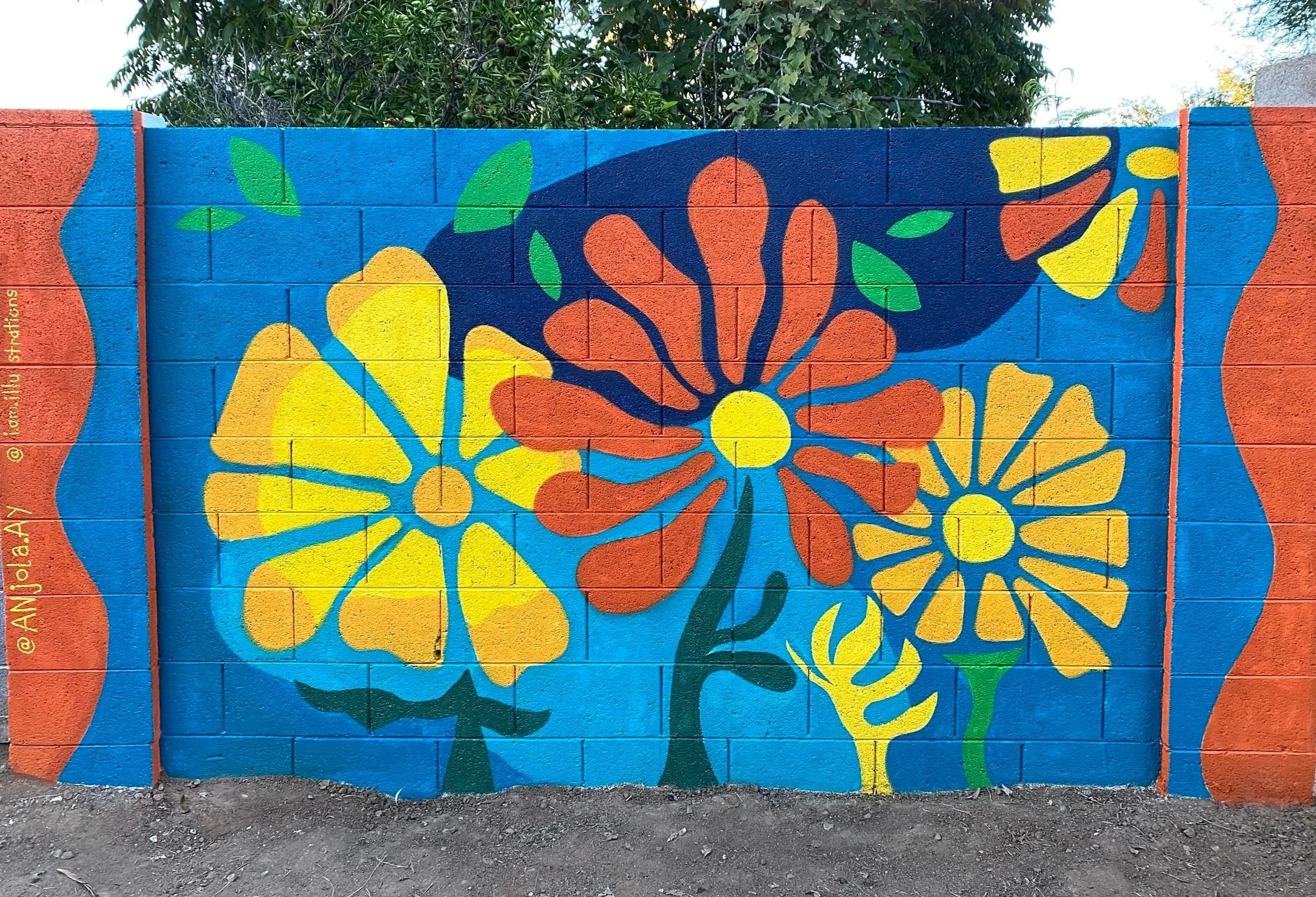 Designed the artwork for an exterior vibrant mural on Brick textured wall in Tempe, AZ. 6 ft x 12 ft. Total 72 sq ft.